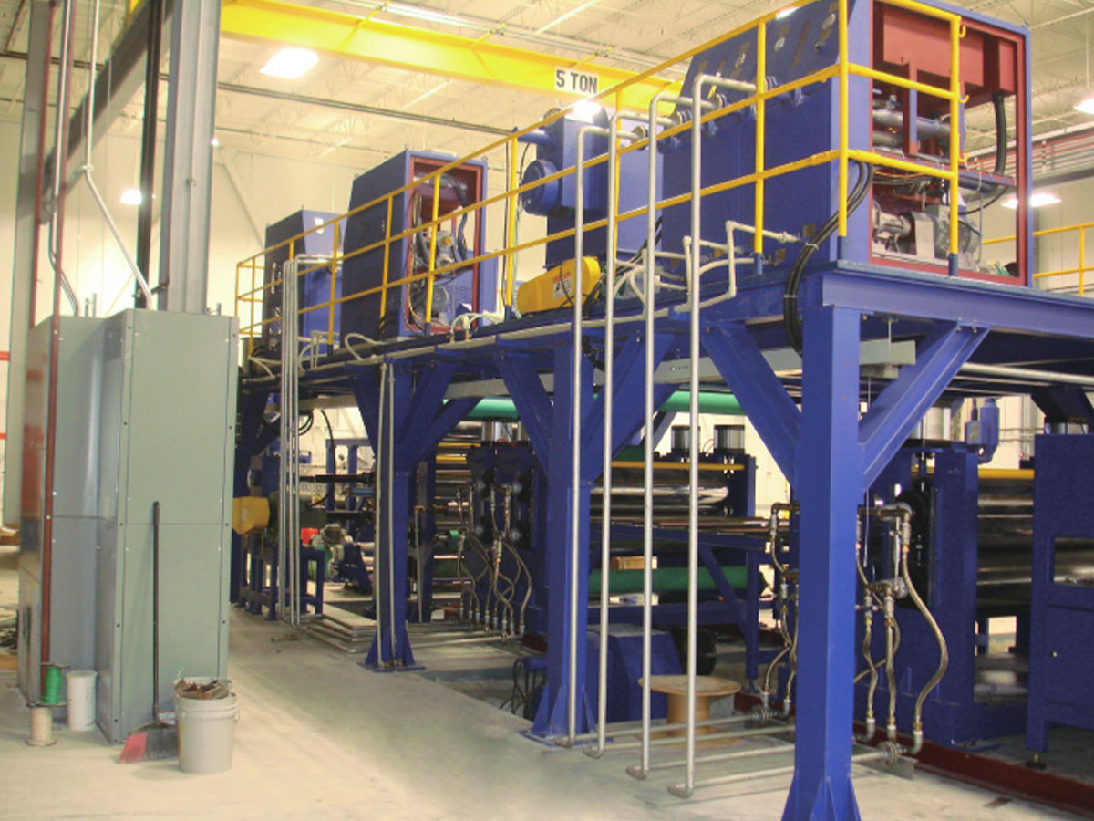هذا الخط مخصص لصنع ألواح مركبة من الألومنيوم من فئة PE/B1. النظرية الأساسية هي تركيب لفائف الألومنيوم وفيلم البوليمر العالي والمواد الأساسية من الطارد تحت ضغط بكرات عالية الحرارة، وقطعها إلى الطول المطلوب. قمنا بترقية خط الجيل الثاني والثالث والرابع بالإشارة إلى مزايا خطوط الجيل الأول من ألمانيا، واخترعنا تقنية التركيب ثنائي الأسطوانة، وتقنية التركيب ثنائي الاتجاه ثلاثي وثنائي الأسطوانة. لم يقتصر الأمر على تحسين أداء التشغيل والاستخدام فحسب، بل تم اعتباره أيضًا من الإنتاجات الأصلية في الصناعة.